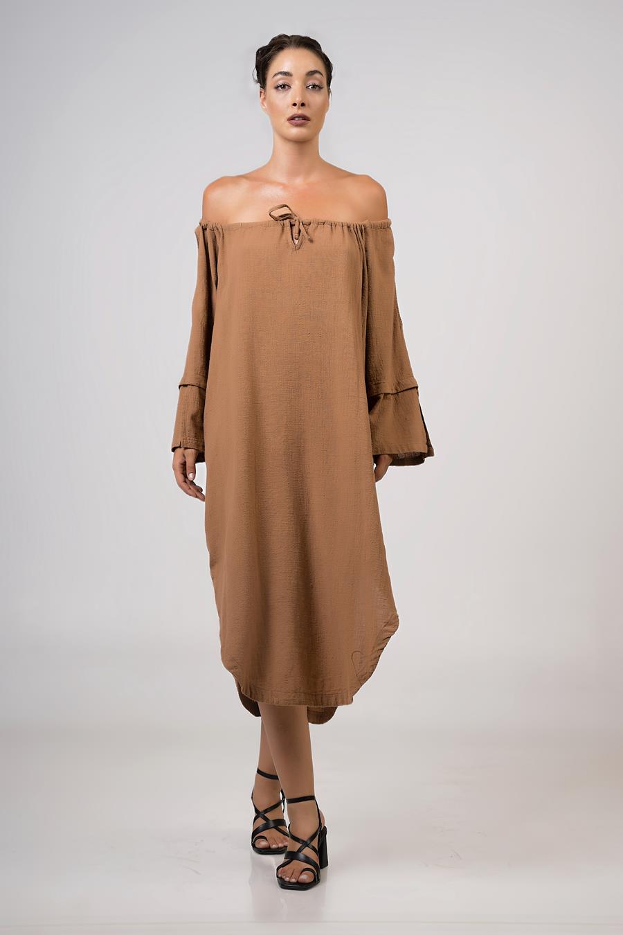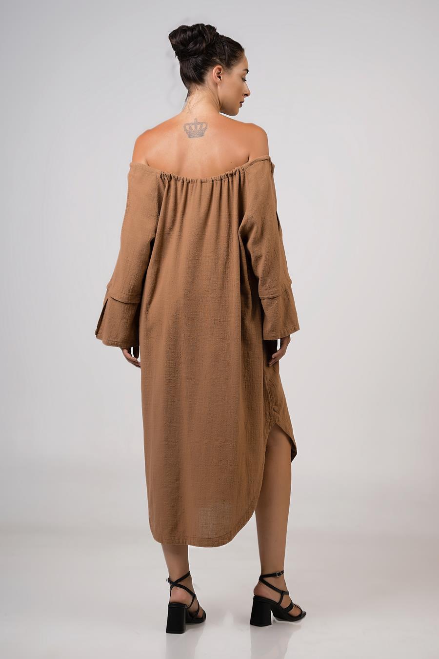 Φόρεμα midi με παρτούς ώμους