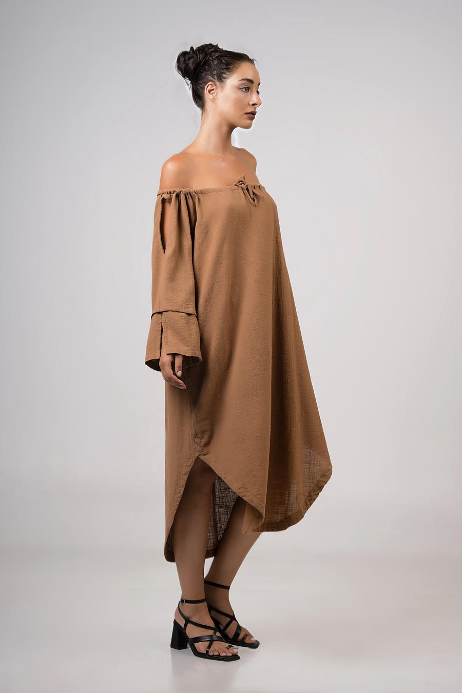Φόρεμα ασύμμετρο με παρτούς ώμους